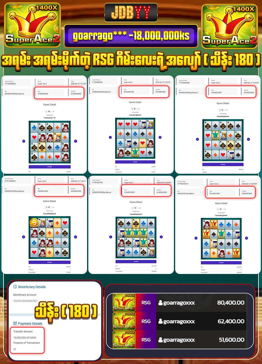 1.Bet on the treasureLink series to win the linked jackpot.